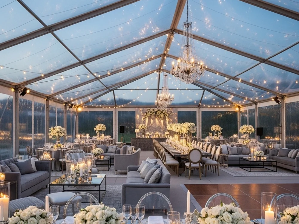 Modern clear tents that create an elegant atmosphere for weddings, receptions, and premium outdoor events.