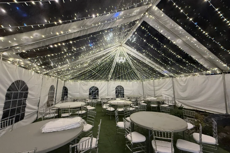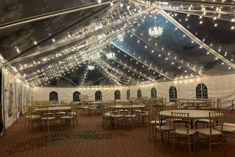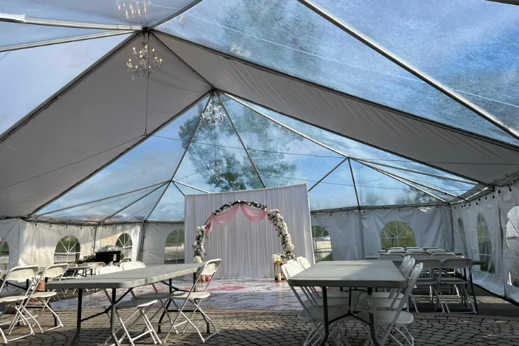 Each rental includes tent delivery, professional installation, and removal after the event. The tent structure stays stable and secure throughout the celebration. Event planners often choose transparent tents because they allow décor and outdoor scenery to remain visible.