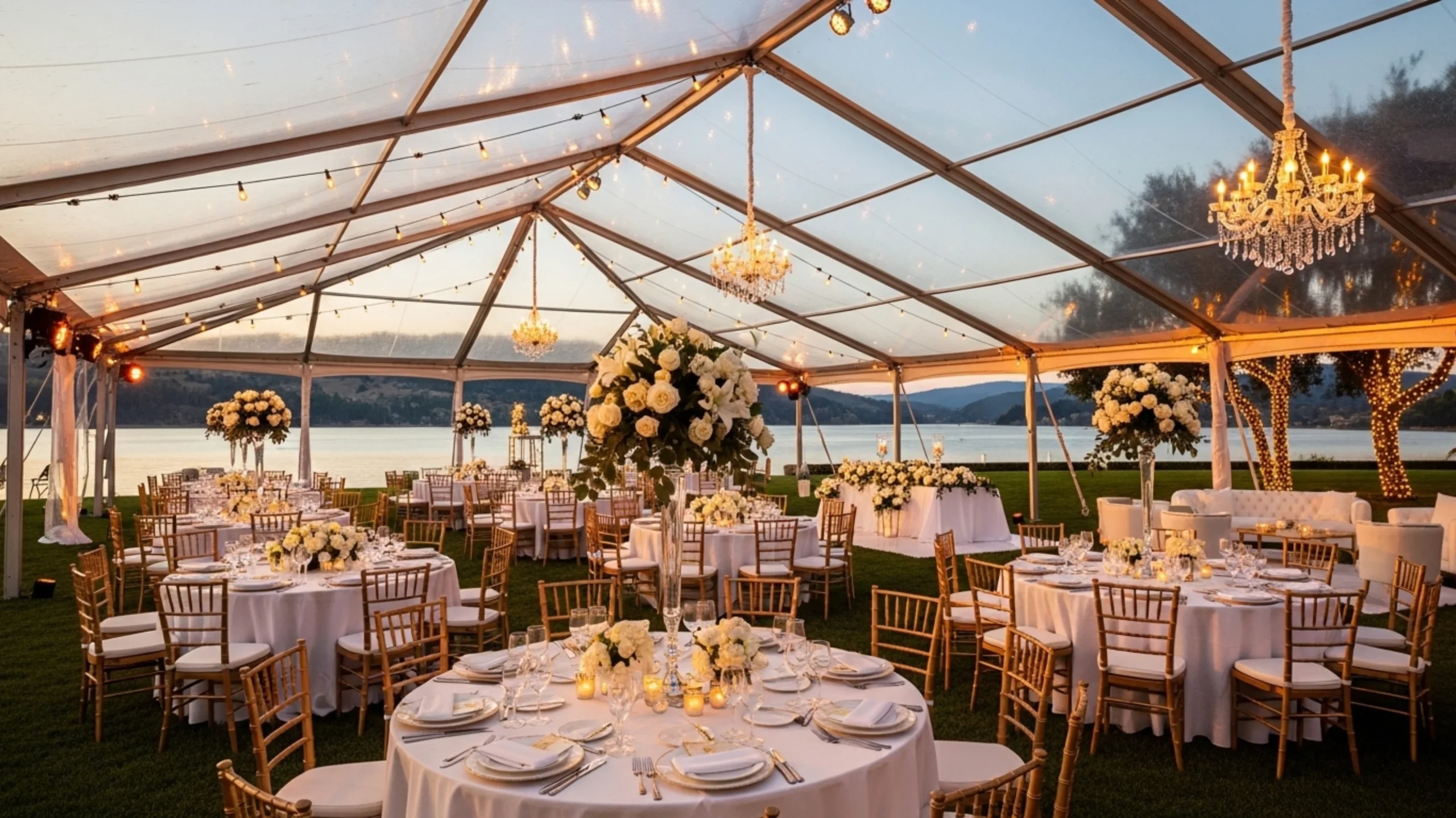 Many outdoor celebrations use transparent tents to combine comfort with a stylish event setting.